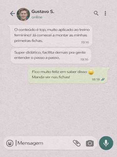 Este não é um material para prometer resultados rápidos. É um guia estruturado para quem quer entender, organizar e aplicar o treino feminino com clareza, segurança e responsabilidade.