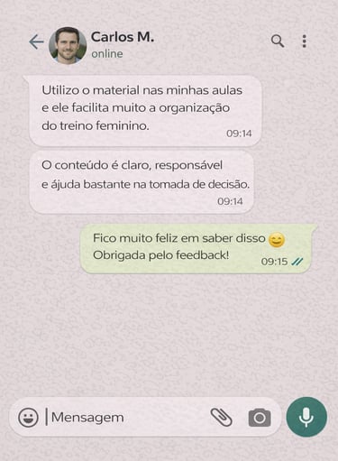 Foi a partir dessa necessidade que desenvolvi este guia: um material complementar de estudo, organizado em módulos, pensado para facilitar a compreensão da lógica do treino feminino.